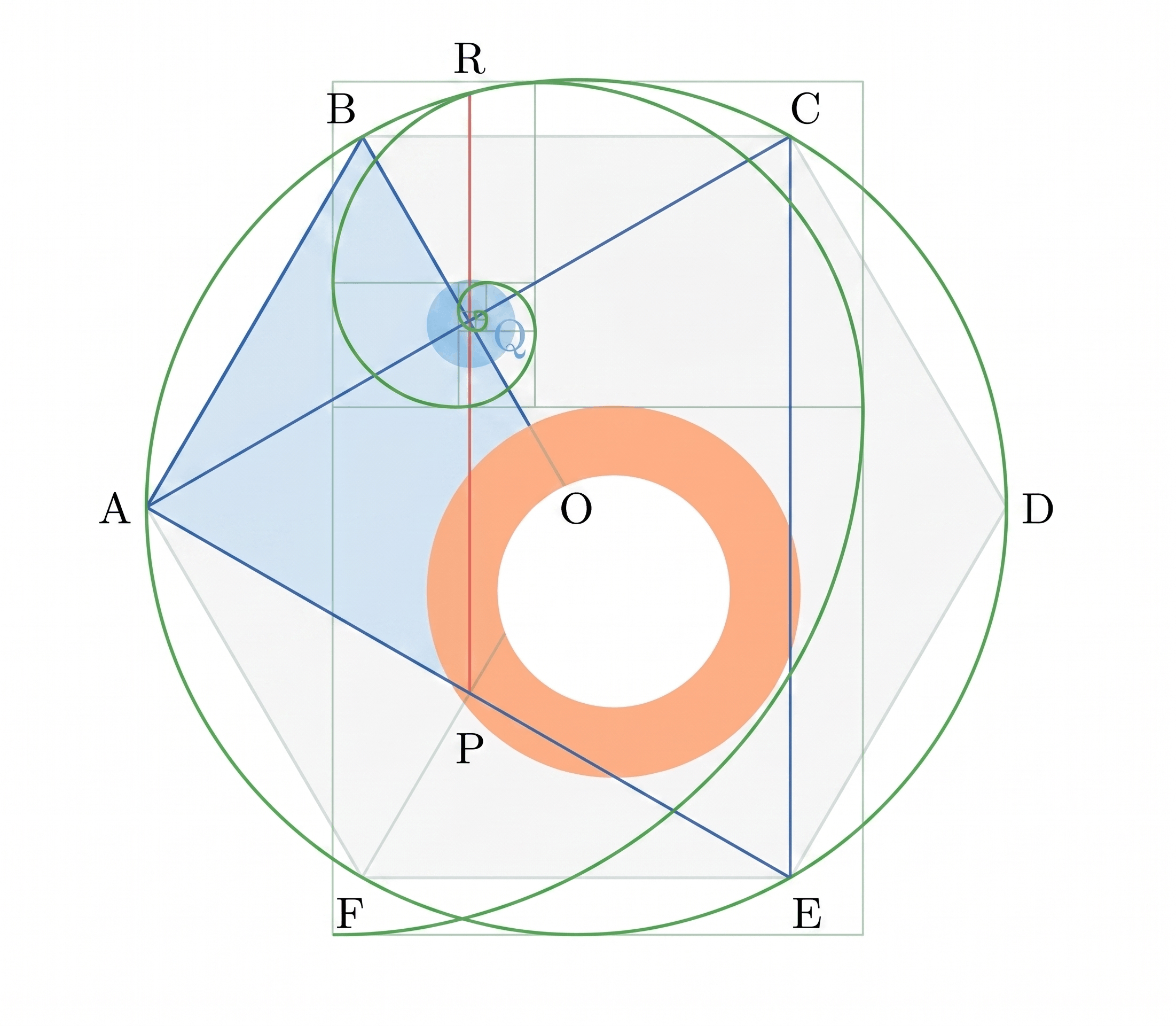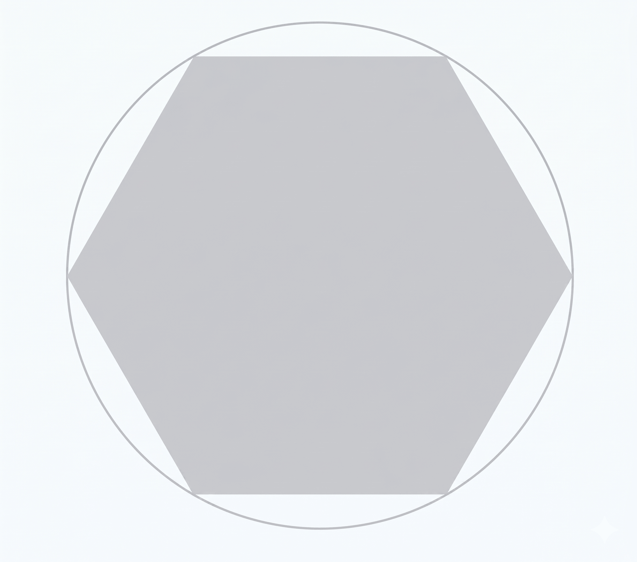 A regular hexagon was drawn inside a circle, with all vertices touching the circumference. This circle was inscribed within a bounding square of side length X. This outermost circle became the master reference for all proportions to follow.